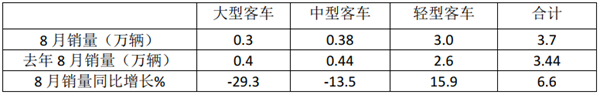 ●8月客车销量同比增长6.6%,大型客车同比下降29.3%,中型客车同比下降13.5%,轻型客车是唯一同比增长(15.9%)的细分车型,也是拉动8月客车市场增长的唯一动力