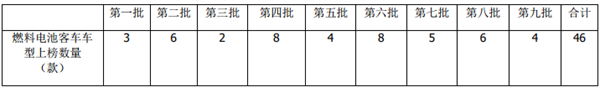 根据工信部数据,截止目前2021年累计发布的9批新能源客车推荐目录中燃料电池客车上榜车型数量统计: