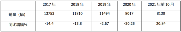 上表可见,2021年前10月销量同比增长超2成(20.84%),创近年涨幅新高,也是近年来唯一同比是正增长的年份。这是为啥?据分析主要原因有以下几个方面: