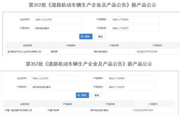 燃料电池客车上榜2款车型,分别为苏州金龙1款燃料电池客车和中植一客成都汽车公司的1款燃料电池城市客车(见下截图),占比9.1%,且占比环减少17.2个百分点,是占比环比减少最多的车型;