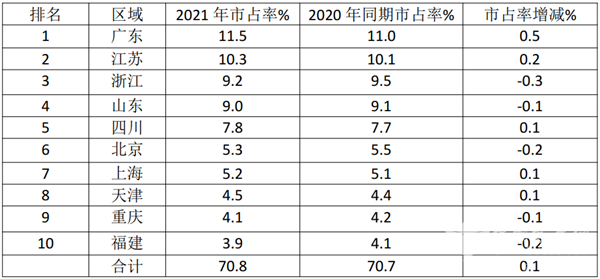 可见,2021年欧系轻客主要流向广东、江苏、浙江等客货两用及物流业比较发达的区域,前10名区域累计占比70.8%,同比占比增加0.1%,成2021年欧系轻客市场的主要贡献者。为何?