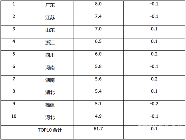 ---山东位居第三,市场占比为7.0%,占比同比增长0.1个百分点;
