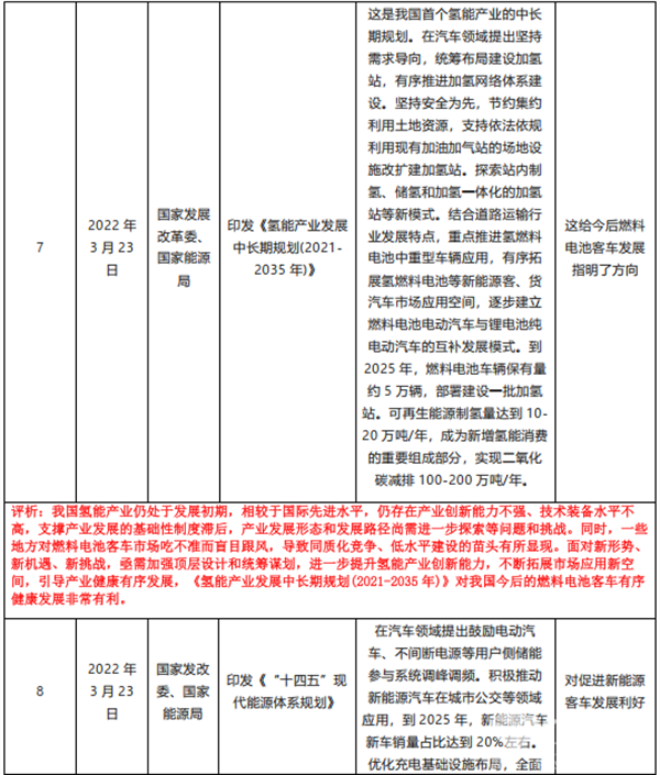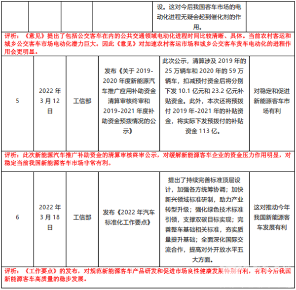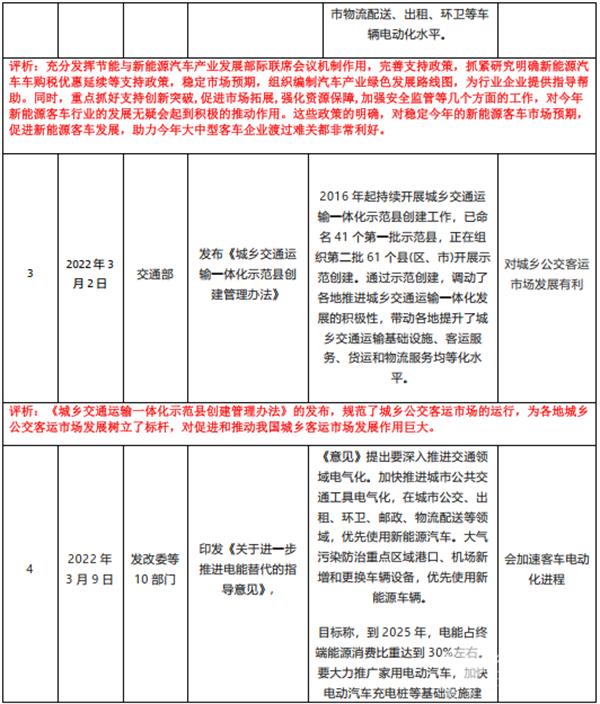 众所周知,客车作为汽车领域的小众市场,主要是作为生产资料的商用车形式存在,其市场发展不但与国家经济大环境有关联,而且与国家出台的各项政策也密不可分,从一定程度上说,客车市场就是政策市场,国家相关政策仍然是引导今后客车市场发展的重要风向标,特别是新能源客车和智能网联客车。为此,特将2022年3月国家层面有关客车发展的主要政策进行汇总,并进行扼要评析,供行业参考。具体如下表: