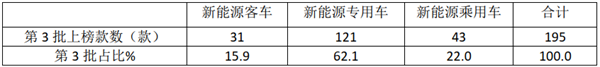 根据2022年工信部发布的第3批新能源汽车推荐目录数据统计,按目标市场划分,各类车型上榜占比如下: