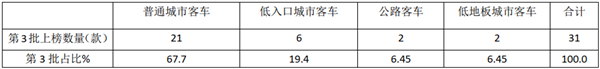 一、新能源客车上榜31款,占比16.56%,在本批次推荐目录中占比最小