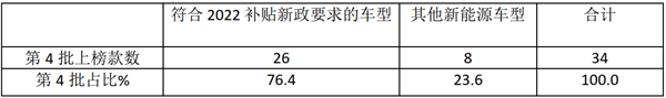 上表可见,在2022年第4批新能源客车推荐目录中,符合2022年新能源汽车补贴新政要求的为26款车型,占比76.4%,为此次新能源客车推荐目录上榜车型中的绝对主体。