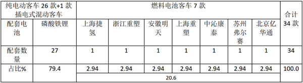 上汽大通的燃料电池客车SH6659H4FCEV、宇通客车的低入口燃料电池城市客车ZK6106FCEVG12、中植一客成都汽车公司的燃料电池城市客车CDL6101URFCEV4、苏州金龙客车上榜的燃料电池客车KLQ6121HYFCEV1N4、厦门金龙客车的燃料电池城市客车XMQ6115FGFCEV01、中通的燃料电池低入口城市客车LCK6106FCEVGF1、青岛美锦新能源汽车燃料电池城市客车QMJ6860FCEVGB1。