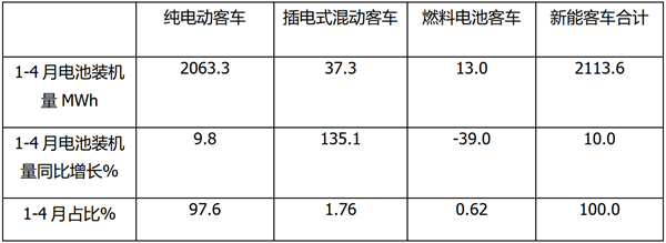 2022年4月及1-4月新能源客车动力电池装机量特点简析