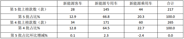 根据2022年工信部发布的第5批新能源汽车推荐目录数据统计,按目标市场划分,各类车型上榜占比如下: