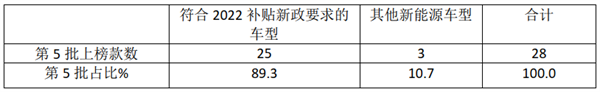 上表可见,在2022年第5批新能源客车推荐目录中,符合2022年新能源汽车补贴新政要求的为25款车型,占比89.3%,为此次新能源客车推荐目录上榜车型中的绝对主体。
