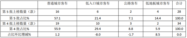 普通类的城市客车上榜16款,占比57.1%,为最大,且占比环比增加1.2个百分点。