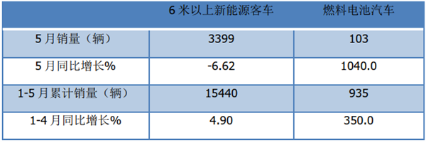 也就是说,无论是今年5月还是1-5月,燃料电池汽车产销均跑赢新能源汽车大盘。