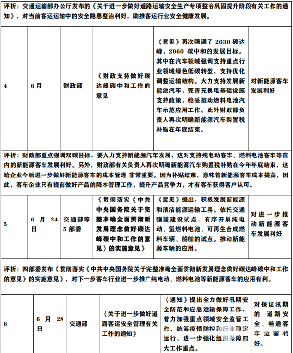 二、2022年上半年影响客车行业的主要政策(国家层面)盘点评析: