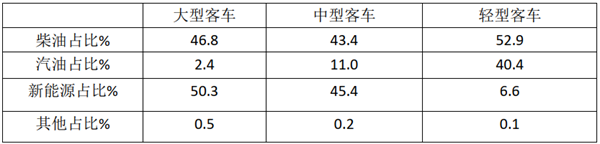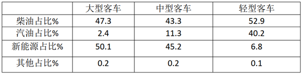 由上表可知,无论是今年6月还是1-6月,新能源在大型客车中占比最高(主要还是新能源大型公交多),次高是在中型客车中;在轻型客车占比最小;柴油类在轻型客车中占比最高,其次是在中型客车中;汽油类主要是在轻型客车中占比较高,其次是在中型客车中(主要是一些前置的中型商务接待车型,如7米丰田考斯特、宇通T7等)。
