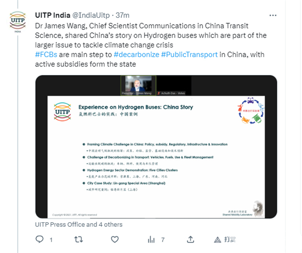 国际公共交通联会(UITP)亚太区与印度区共同组织的新年第一次网络研讨会 《零排放氢燃料巴士:经验与领先》(Hydrogen Zero Emission Buses: Experience & Way Ahead Webinar)于2023年1月31日下午顺利举行,来自欧洲和亚太地区的专家发言并分享知识,讨论氢燃料巴士在公共交通领域的发展现状、部署机会与挑战,并通过不同地区的案例研究展望未来的燃料巴士;来自28个国家80家公司的110名与会者参加了会议!