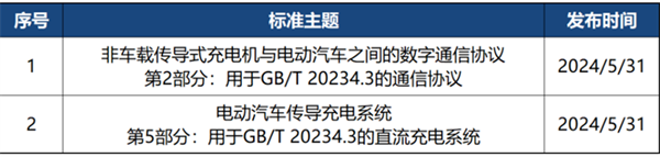 2024年5月有2部新立项标准法规,均与电动汽车充电相关,涉及直流充电系统与通信协议。详情如下: