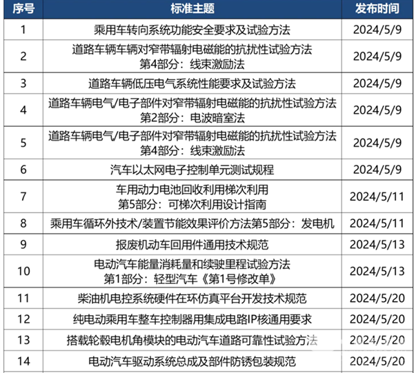 对此,笔者根据慧眼看车等对2024年5月相关汽车行业标准法规汇总进行归纳汇总,供行业参考!
