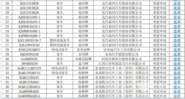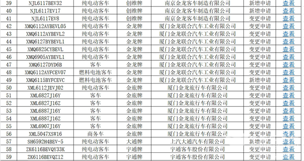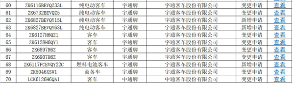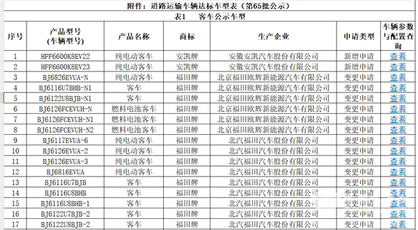 上图可见,在交通部第65批上榜的达标的道路运输客车车型公告中:
