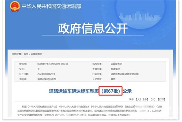 截图1,交通部道路运输车辆达标车型表(第67批公示)