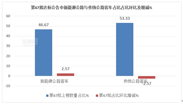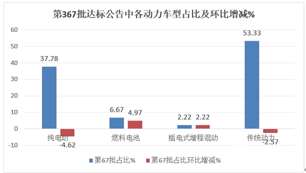 表1,第67批交通部达标车型公告上榜的各动力车型数量、占比与上一批环比(数据来源:交通部)