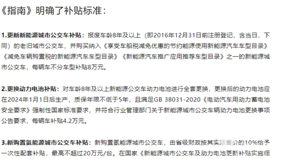 评析:《河南省推动交通运输领域设备更新实施方案》的发布,明确了2025年新能源公交车要达到的具体比例,目标具体、清晰,对推动河南全省各城市老旧公交客车的及时更新换代提出了明确要求,加速了河南各地公交客车的全面电动化步伐;对其他省份公交客车的全面电动化也起到了示范作用。