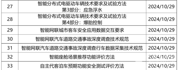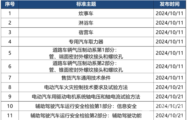 2024年10月发布的汽车行业(多与客车相关)标准法规汇总