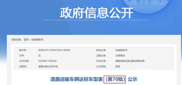 截图1,交通部道路运输车辆达标车型表(第70批公示)