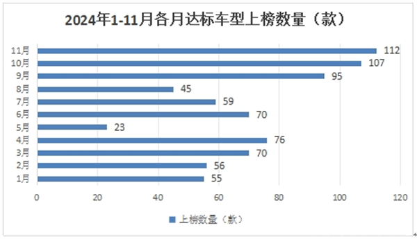 上图可见,在2024年1-11月交通部发布的各批次公路客车达标车型公告中,11月份对应的第70批公告上榜了112款车型,创今年1-11月各月新高,这是本批次公告的一个显著特点。说明各客车申报公路客车特别是新能源公路客车的积极性比之前都有所提高。据分析主要是随着年底的接近和春运的即将到来,市场对公路客车需求或将迎来一个小高潮,因此车企为了抓住这一波机会,因此加大了公路客车产品的申报。