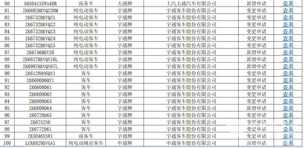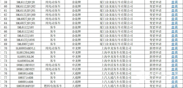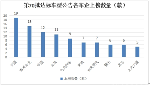 上图可见,在交通部第70批上榜的达标的道路运输客车车型公告中: