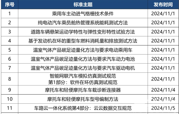 对此,笔者根据慧眼看车等对2024年11月相关汽车行业标准法规汇总进行归纳汇总,供行业参考!
