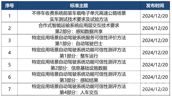 --- 其中第1项到第7项均涉及到与汽车自动驾驶技术相关的各项标准要求及测评方法等。