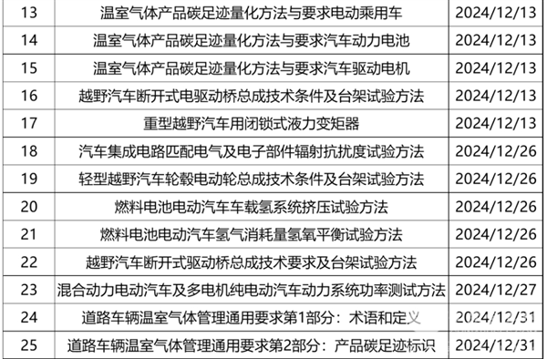 对此,笔者根据慧眼看车等对2024年12月相关汽车行业标准法规汇总进行归纳汇总,供行业参考!