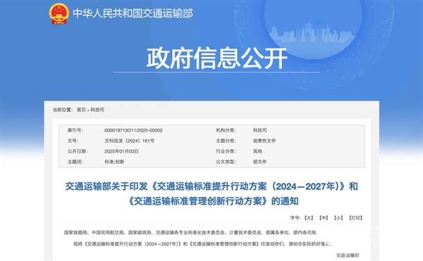 2025年1月,交通运输部关于印发《交通运输标准提升行动方案(2024—2027年)》,其中明确将提升运营车辆车路、车车信息协同技术水平,促进自动驾驶技术在交通领域的应用,提高路网通行和车辆运输效率;营造更有利于新能源汽车发展的消费环境,提升新能源汽车安全水平,支撑构建氢能制储输用全产业链标准体系;提支撑大宗货物长距离运输零碳高效运输,提高交通工程机械电动化水平;完善交通安全强制性国家标准体系,提升城市客运安全管理水平,增强安全应急保障能力等。