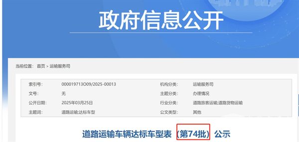 截图1,交通部道路运输车辆达标车型表(第74批公示)
