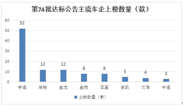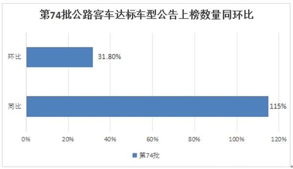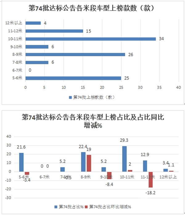 上表图说明,在第74批交通部上榜达标道路运输客车车型中: