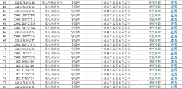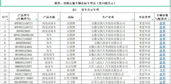 上图可见,在交通部第74批上榜的达标的道路运输客车车型公告中: