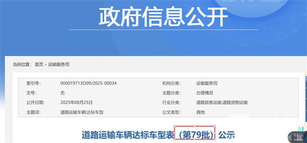 截图1,交通部道路运输车辆达标车型表(第79批公示):