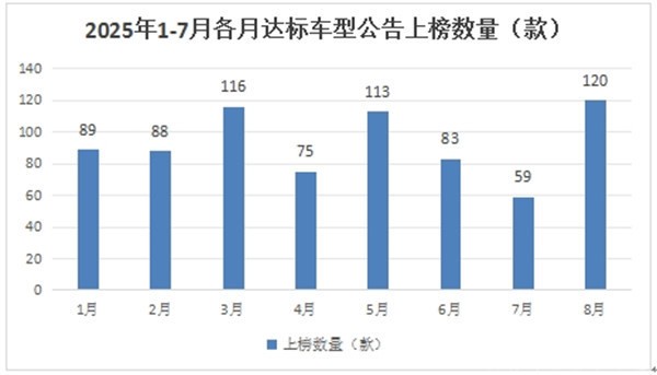 根据交通部数据,2025年1-8月各月(各批次)公路客车达标车型公告上榜数量统计如下: