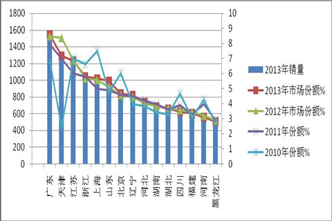 根据最新数据,2013年1-12月团体客车共销售17773辆,与2012年的17817辆销量比较下降了0.25%,与2011年同期的16992辆同比增长4.60%,并呈现以下特点: