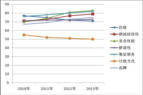 4.对售后服务的关注程度也越来越高,而且在诸要素中居于第二,说明非价格竞争的因素在团体客车产品中已经居于非常重要地位,这给客车企业的竞争策略提供了参考。