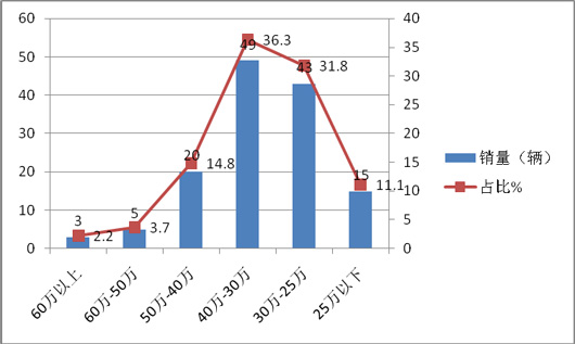 企业单位购买的考斯特客车以25-30万价格区间占的比例最大,达到44.5%,这类产品主要是国产仿考带独立悬架的考斯特客车;其次是25万以下的产品,这类产品主要是国产板簧的考斯特客车。而30万以上的中高端考斯特客车较少。可见企业单位比较注意价格。