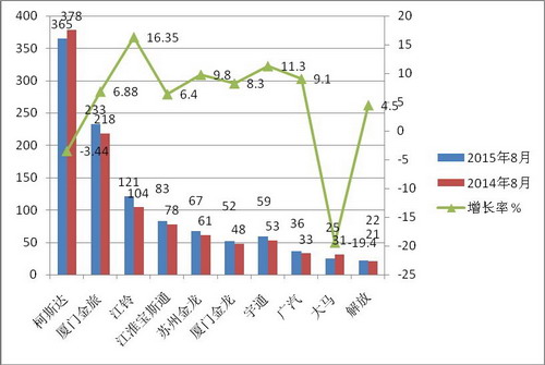 2015年8月各主流考斯特品牌销量统计表(来自最新上牌数据)