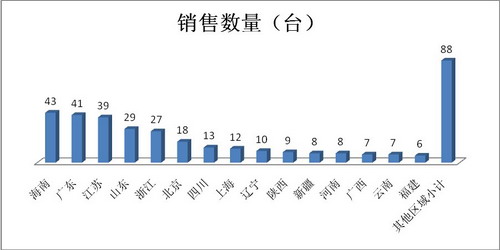 (一)高端考斯特销量的大哥大----一汽丰田柯斯达2015年8月累计销量为365台,比2014年同期下降近3.44%,主要分布区域市场在海南、广东、江苏、北京、山东、浙江、四川、上海等区域。主要目标客户群体是旅游客运和政府公务用车;价格在40-50万是其销量比例最大的价格区间。