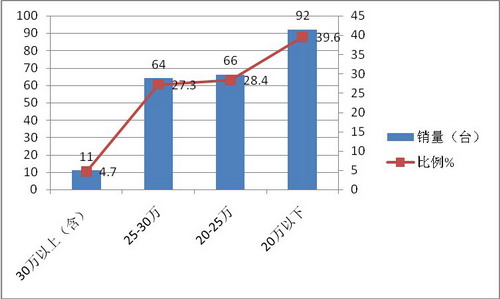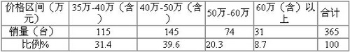 2、按价格划分,对小金龙考斯特2015年8月销量结构分析: