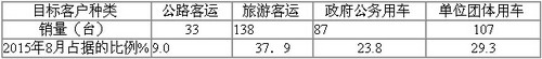 3、按目标客户群体分类对2015年8月丰田柯斯达的主要销量结构分析