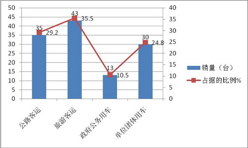 4.星级酒店:用于酒店接待、包团活动用车,占市场12.1%,同比上升了1.41个百分点。