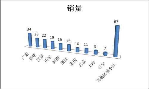 1、小金龙考斯特2015年8月份销量流向分布区域如下: