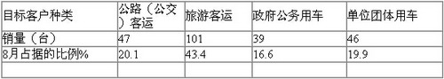 2、按目标客户群体划分分析2015年8月小金龙考斯特销量结构