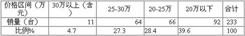 2、按价格划分,四川考斯特2015年8月销量结构: