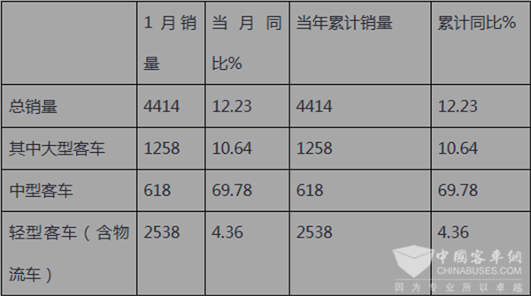 2018年1月“两通三龙”客车销量评析
